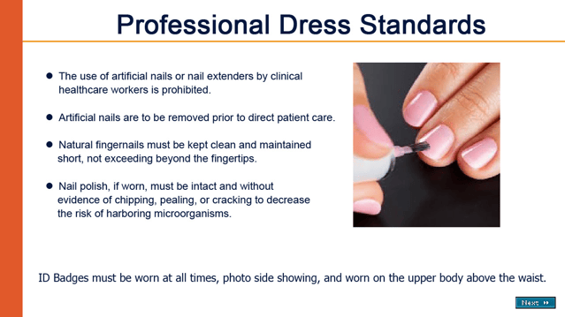 Reminder: Artificial Nails are Prohibited when working with patients.